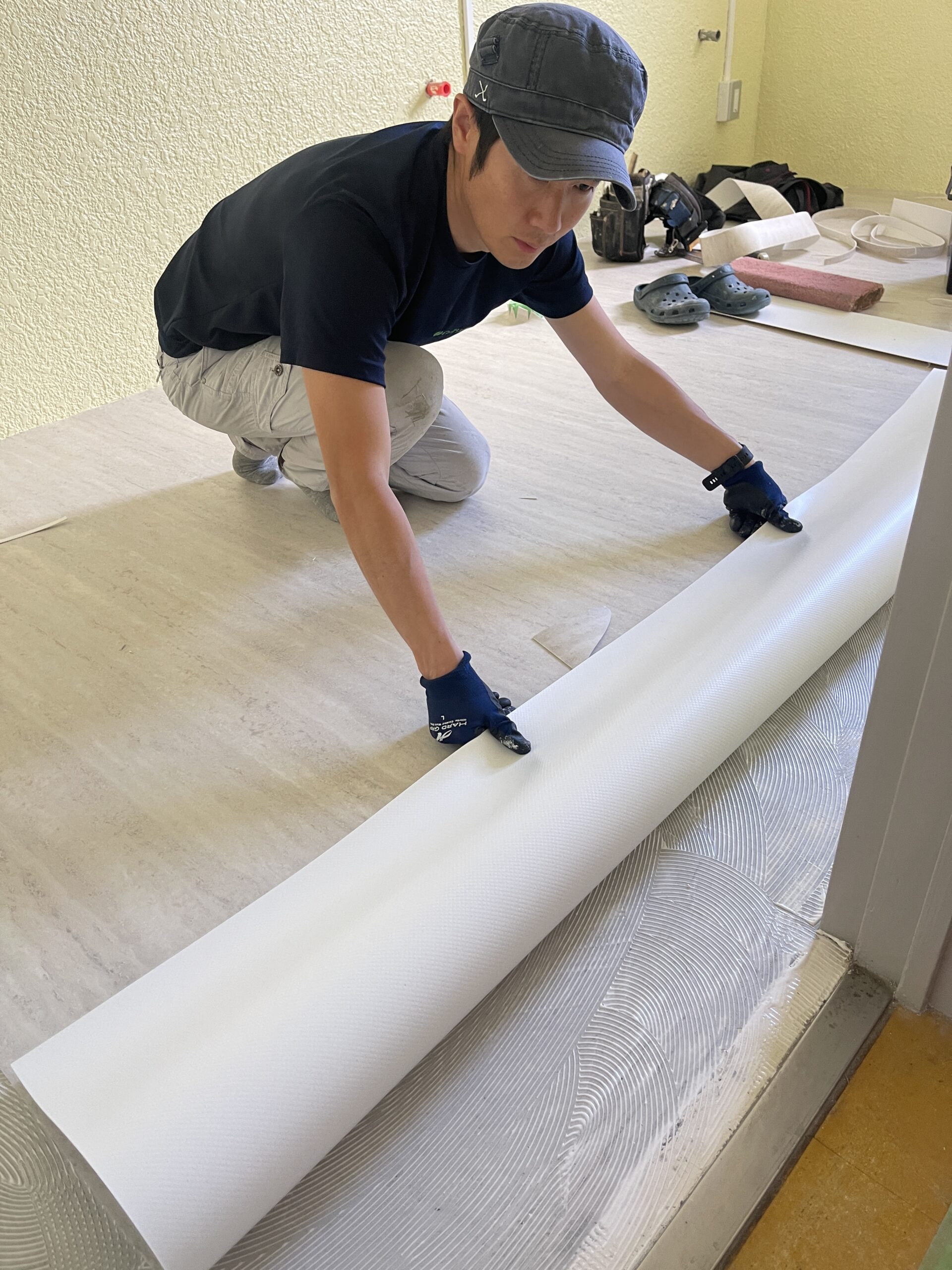 低VOC・F☆☆☆☆相当の材料・接着剤を使用。施工当日は換気を行い、数時間〜数日で落ち着きます(個人差あり)。